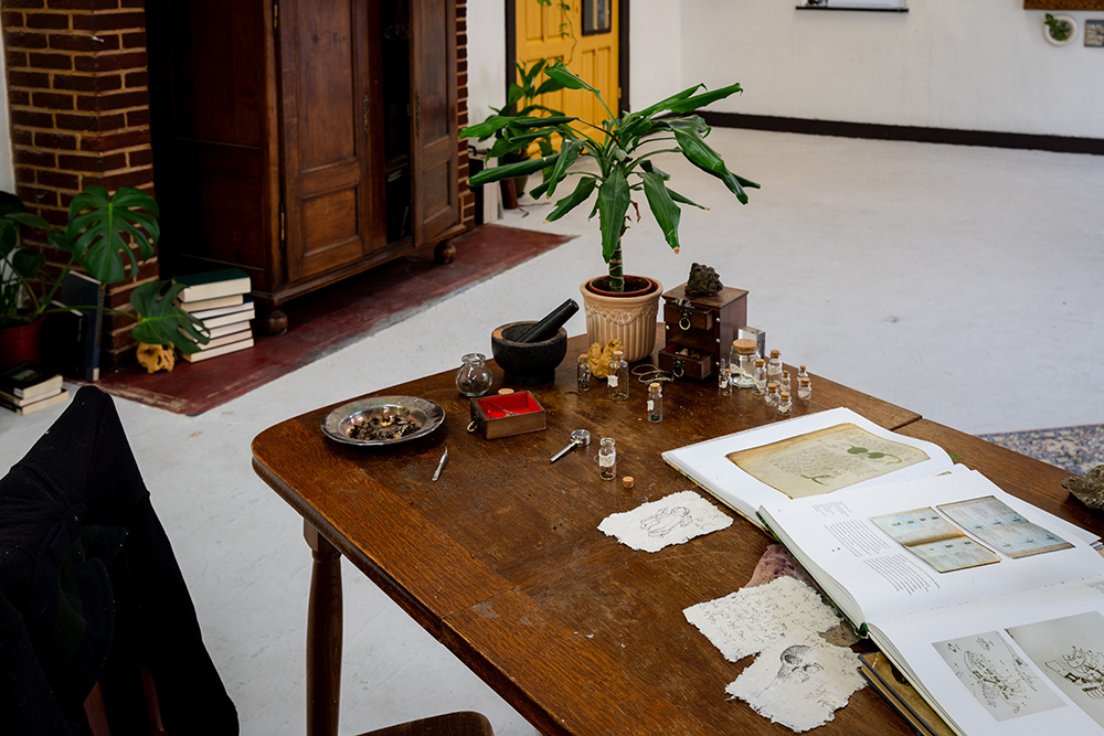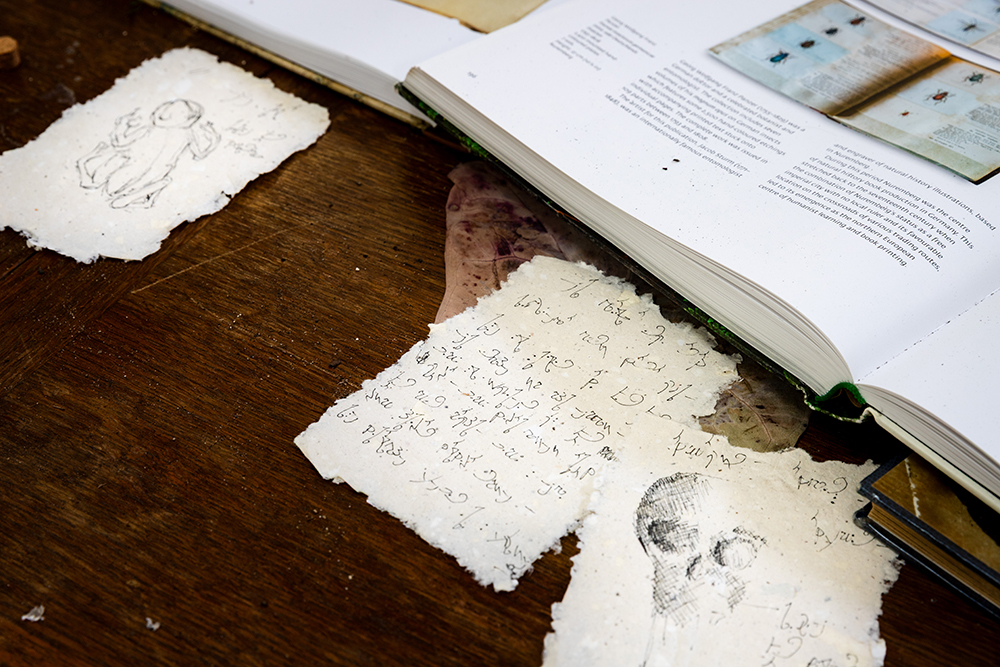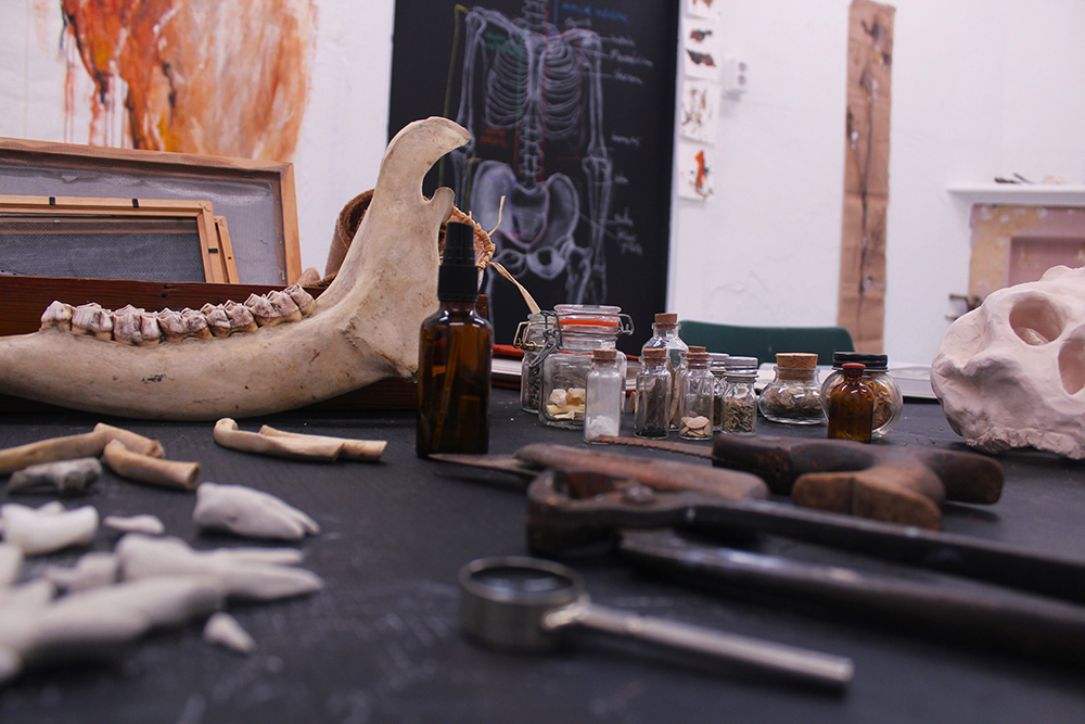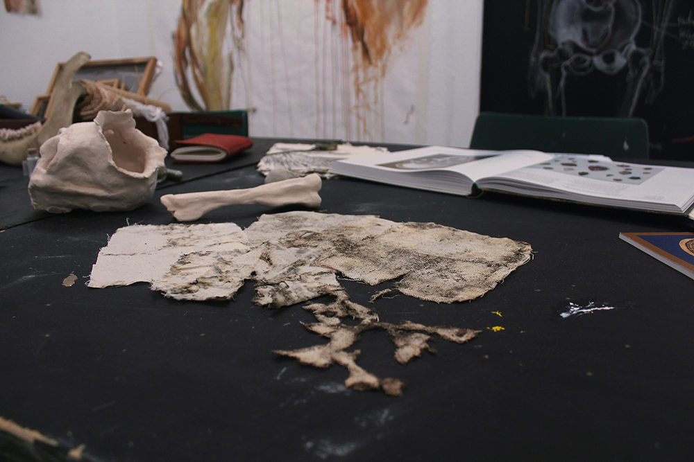 Working Space started in my first solo exhibition at school and is a vital part of my art practice. It hints to a human being, researching, studying, learning, and it hints to another world beyond our reach and knowledge.